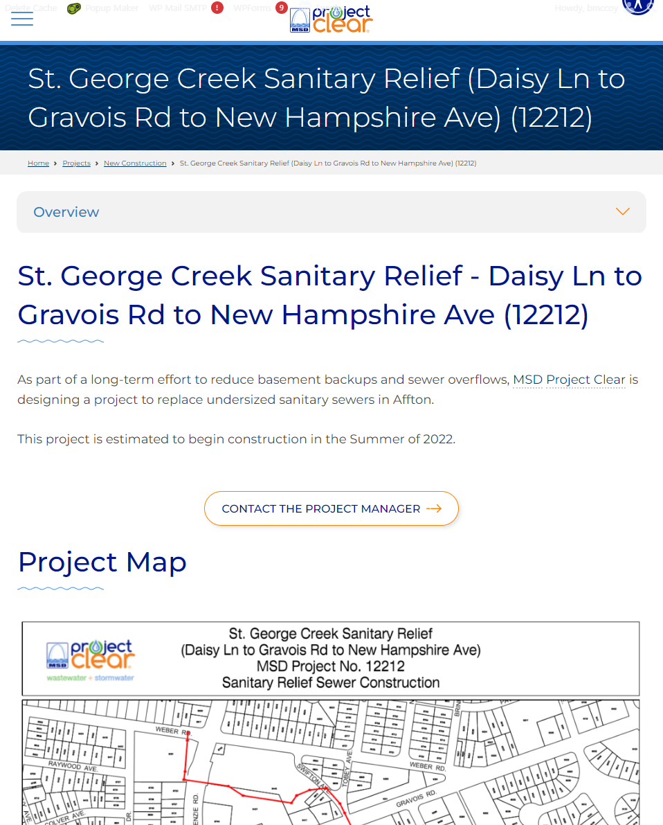 While VPMs provided an adequate alternative to traditional meetings, we knew that transparency and accessibility would be more important than ever as in-person interactions decreased. As such, beyond VPMs, we also created dedicated webpages for our construction projects on the MSDProjectClear.org website.
